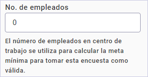 • Al seleccionar la encuesta de tipo NOM-035 Referencia III se habilitará el campo No. de empleados en el formulario, ingresa el total de empleados en el centro de trabajo en el que se aplicará la encuesta.