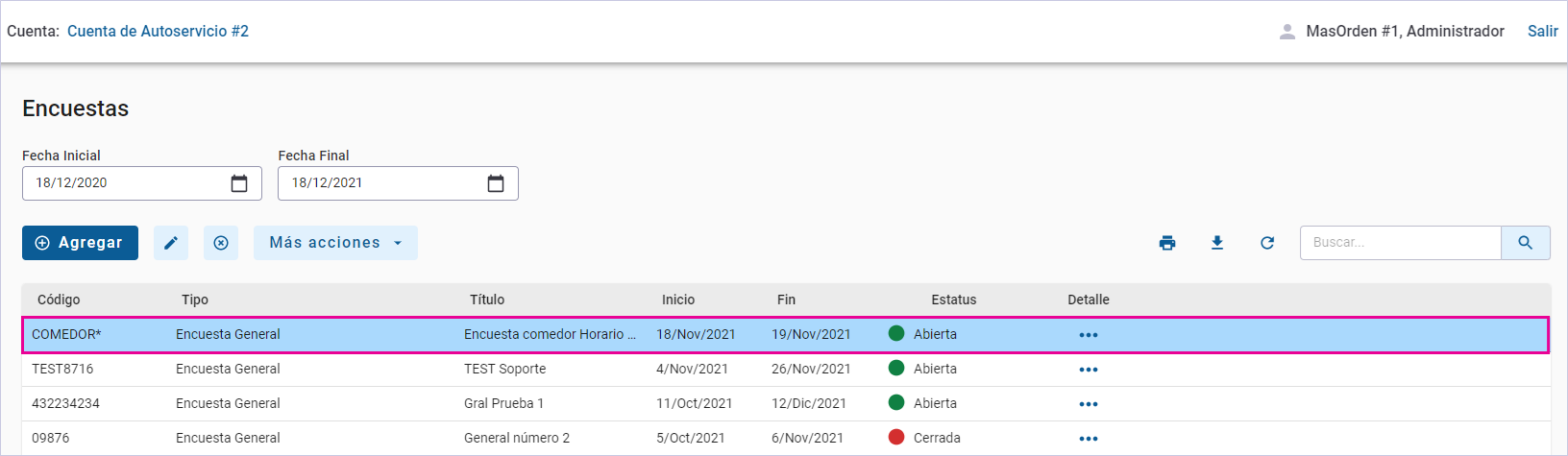 2. Al finalizar, aparecerá la encuesta agregada en el listado.