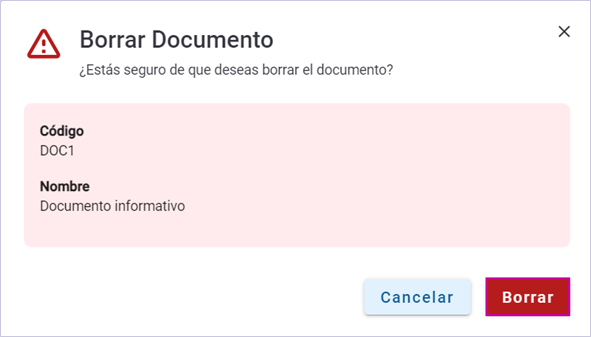 2. Aparecerá la pantalla Borrar Documento, da clic en Sí para terminar con el proceso.