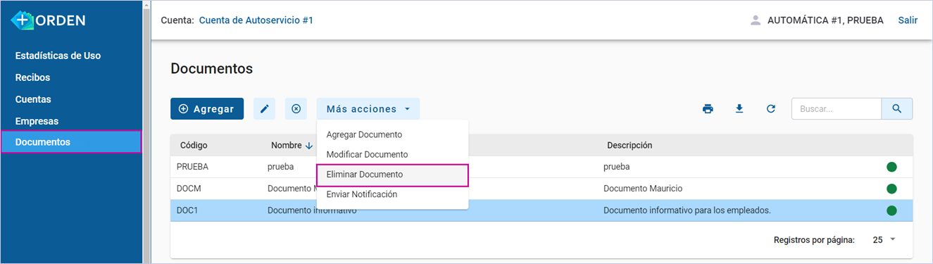 El siguiente artículo describe los pasos para eliminar un documento desde la Consola de Administrador +ORDEN (Consola).