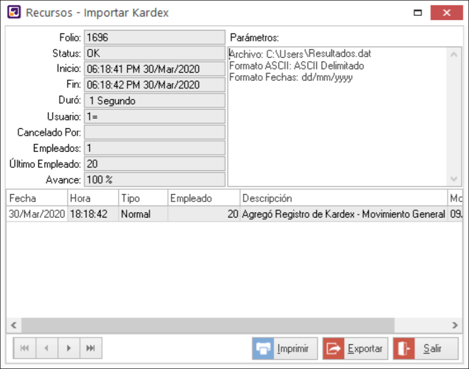 La consulta de los resultados obtenidos de la importación puede realizarse desde: