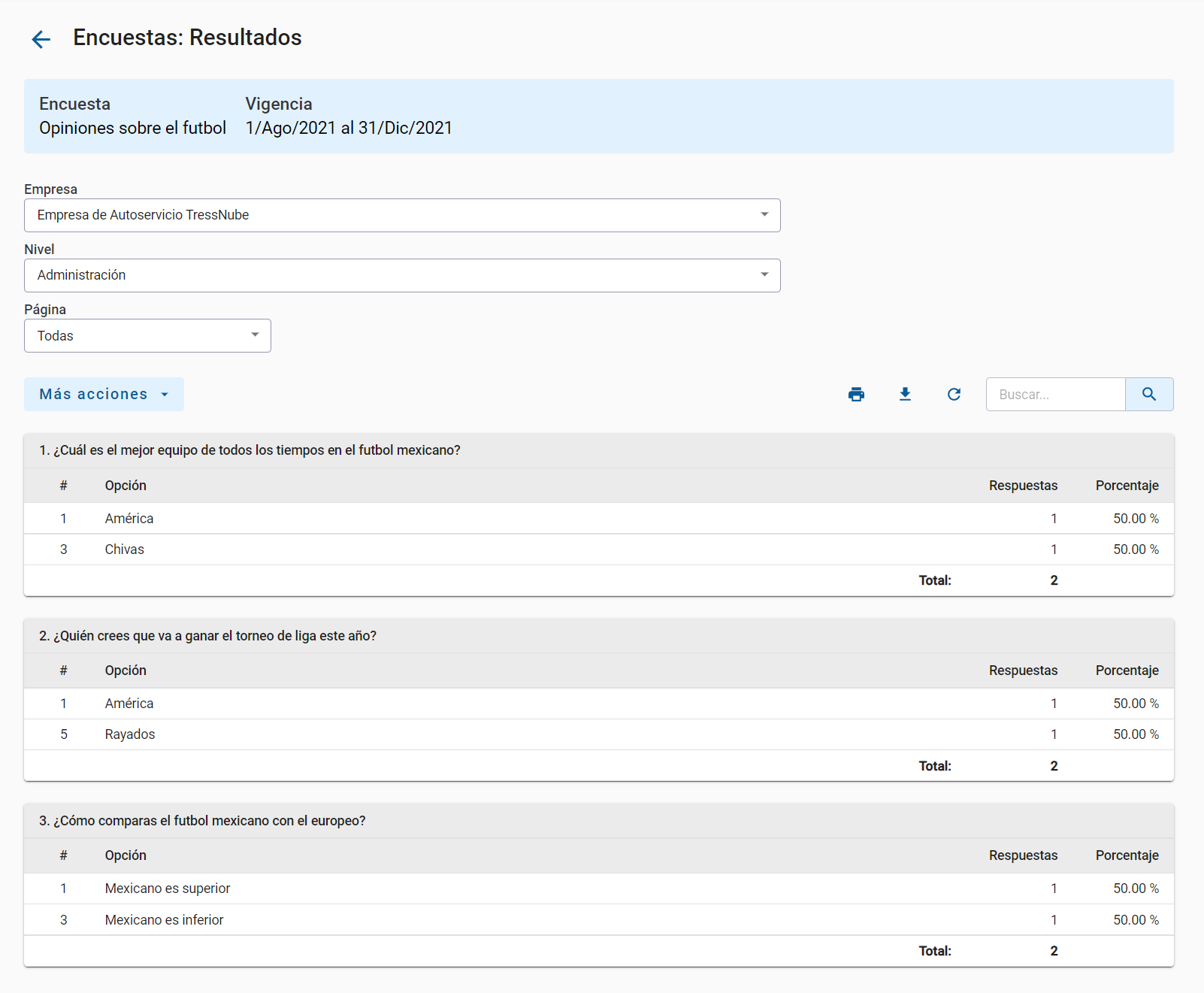 2. Aparecerá la pantalla Encuestas: Resultados, se mostrará la siguiente información: