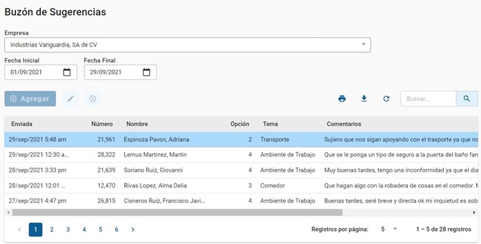 Dentro de Buzón de sugerencias, podrás consultar las sugerencias que lo colaboradores hayan ingresado en +ORDEN, con relación a los temas seleccionados.