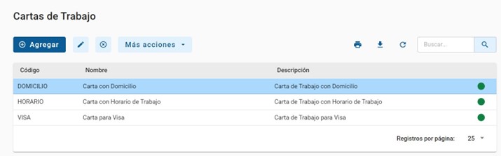 En la pestaña de cartas de trabajo, podremos consultar las cartas que tengamos disponibles para nuestros colaboradores en +ORDEN.