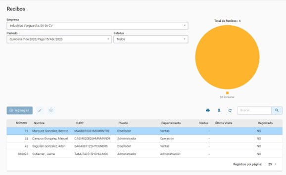 Adicional a lo anterior la página nos muestra una tabla con el detalle de los colaboradores timbrados, los datos que nos muestra son: