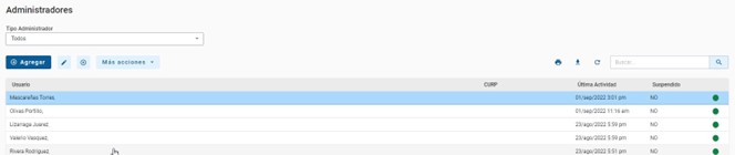 - Tipo Administrador: Permite filtrar y conocer los registros de administradores por un rol en específico.