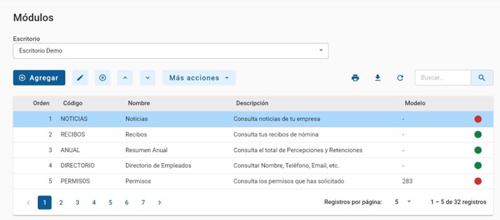 - Escritorio: Muestra la configuración de los módulos que tiene cada empresa.
